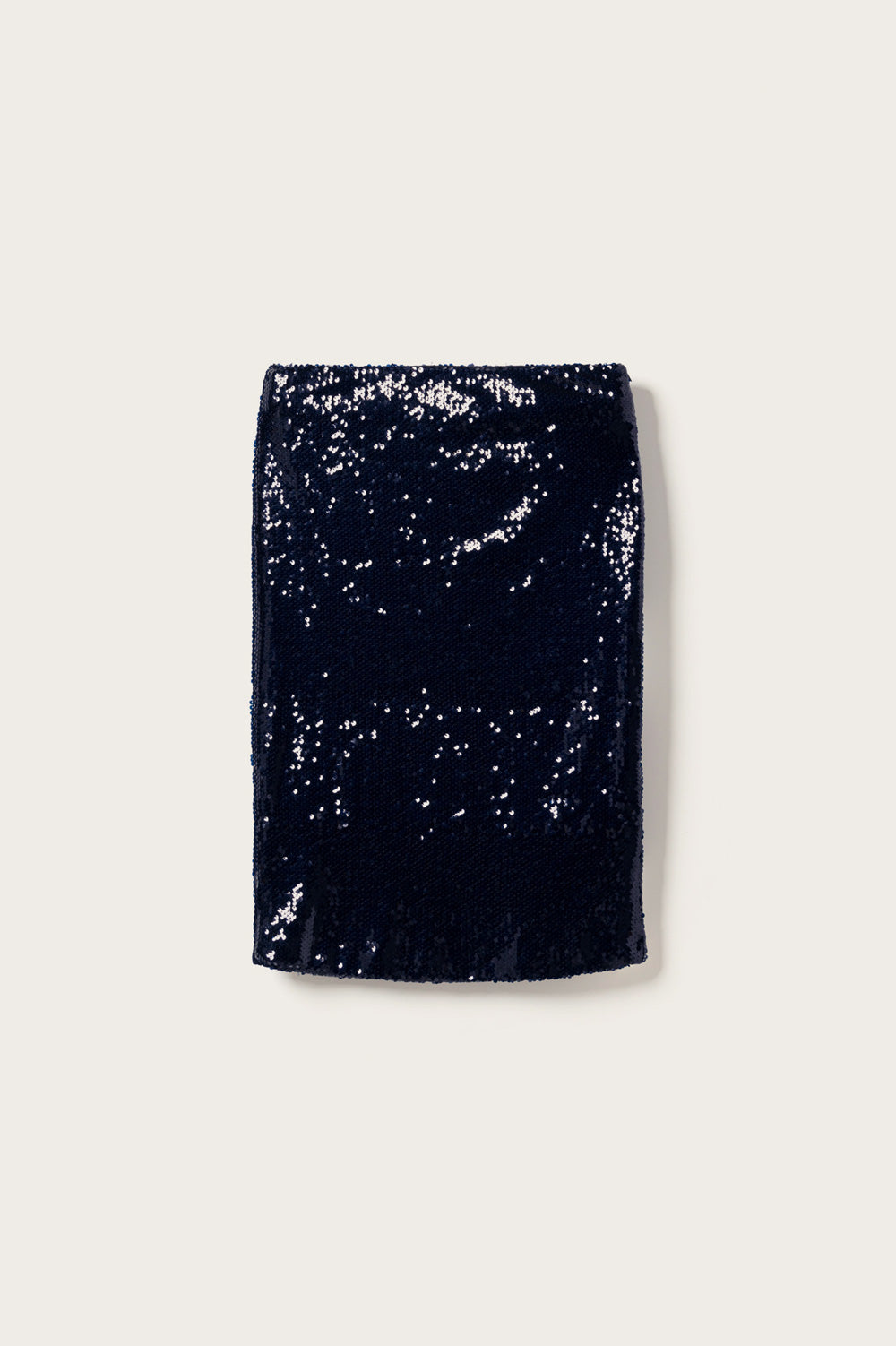 Kayden Long Skirt ist ein midilanger Rock mit Pailletten und seitlichem Reißverschluss.