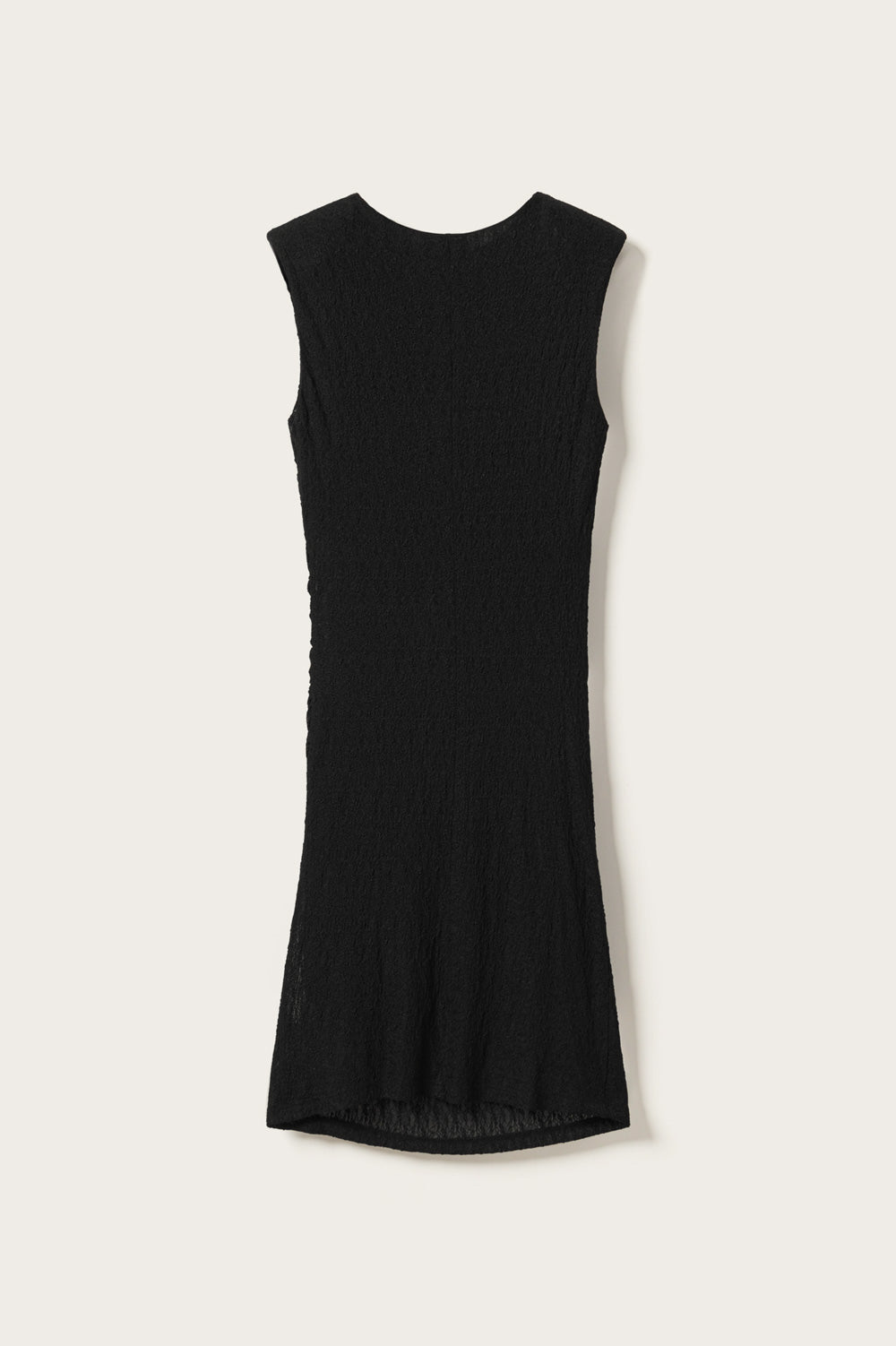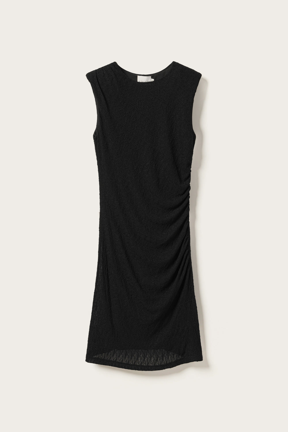 Lachina Dress ist ein kurzes, ärmelloses Kleid mit Raffung an den Seitennähten und Schultern aus feiner Spitze. Die figurbetonte Passform fällt sanft am Rock. Mit Stiefeln für einen coolen Look oder mit High Heels für einen klassischen Stil kombinieren.