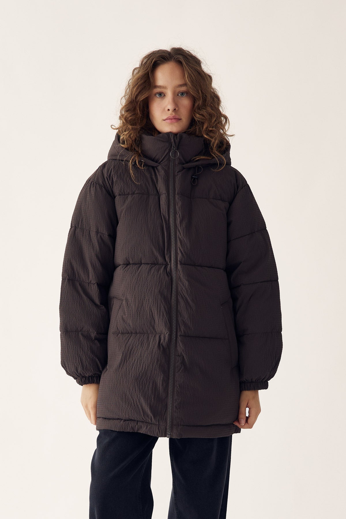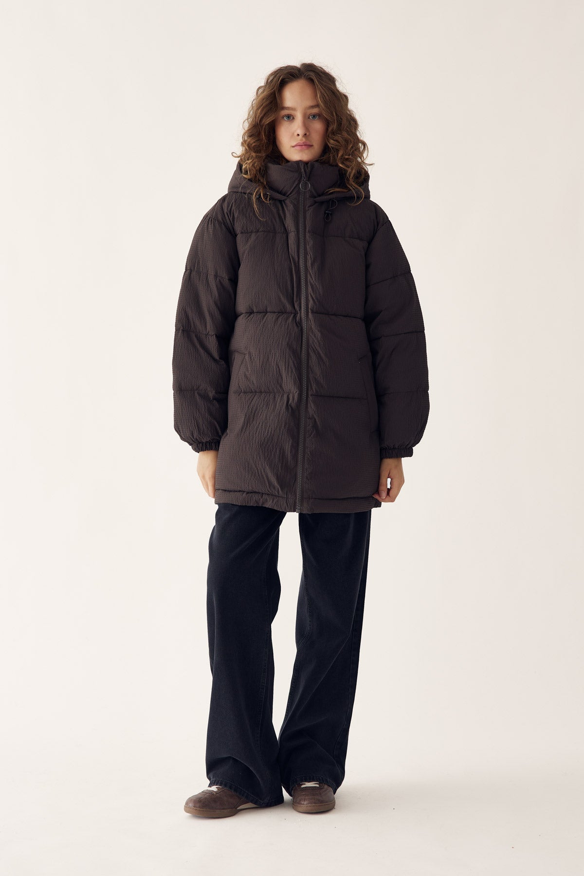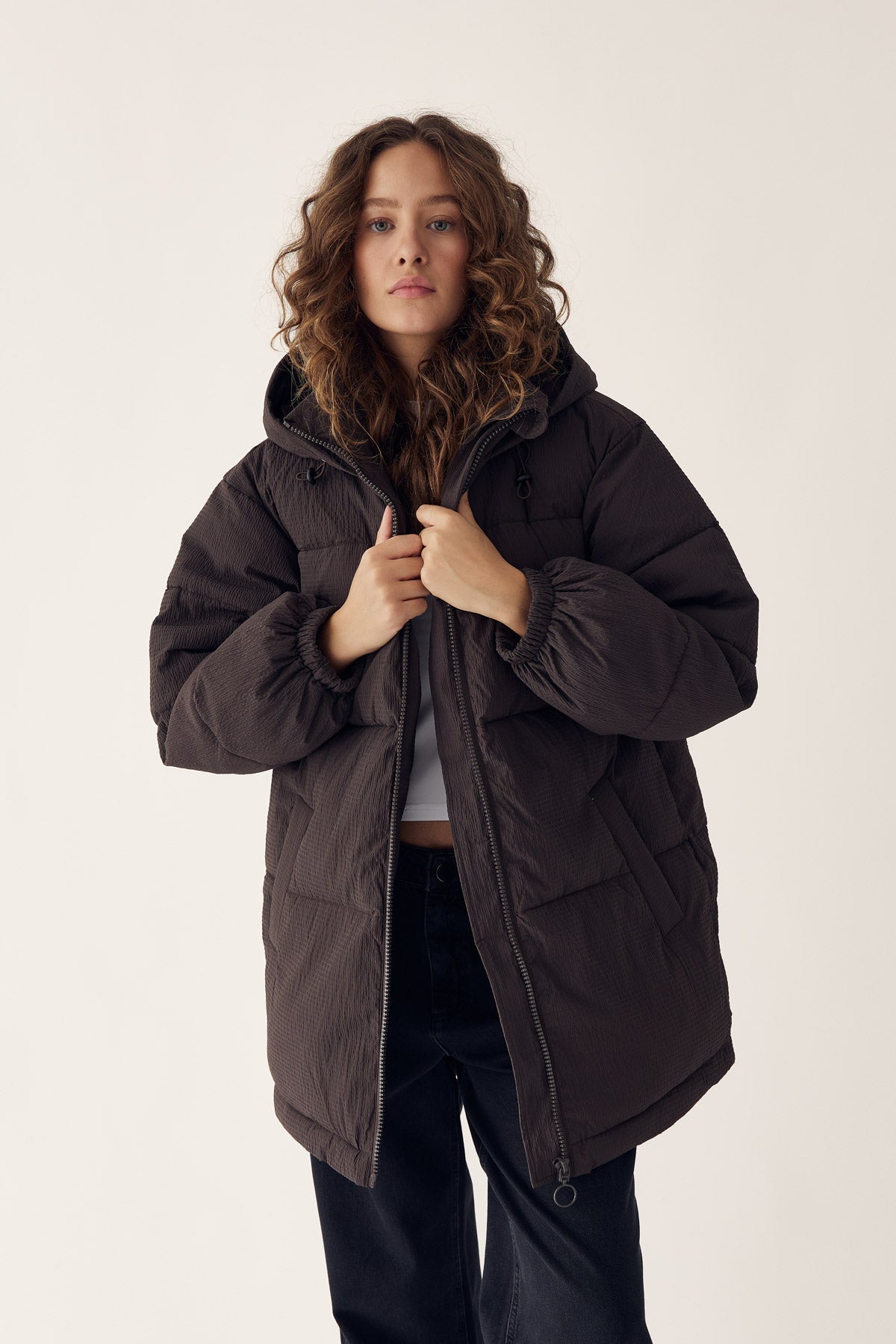 Leister Jacket ist eine mittellange Steppjacke mit verstellbarer Kapuze und Reißverschluss. Leister Jacket hat eine lockere und bequeme Passform.