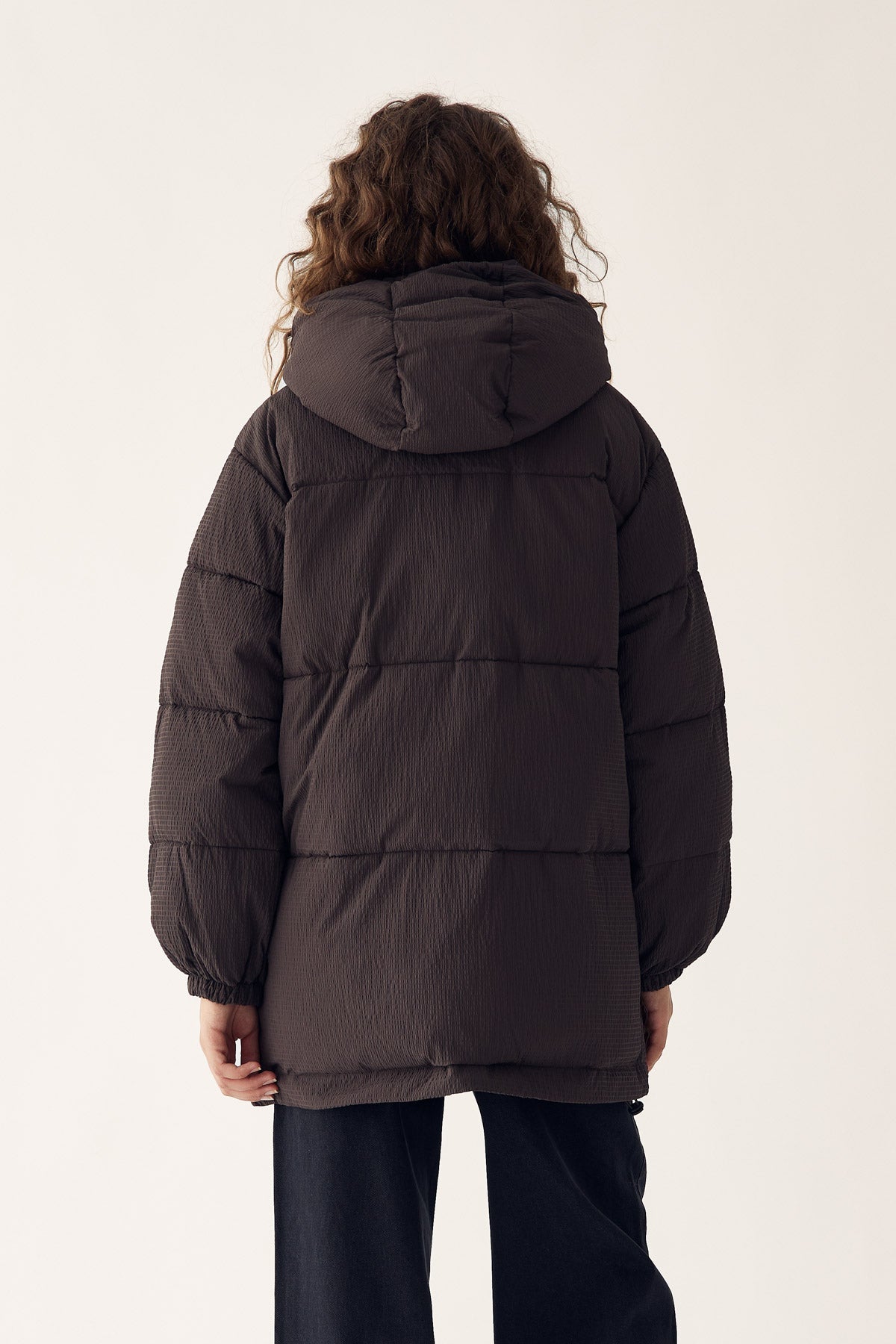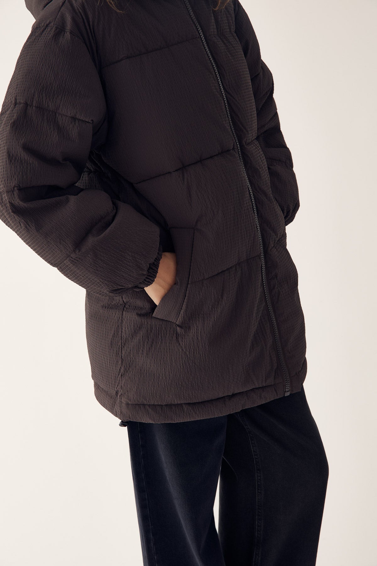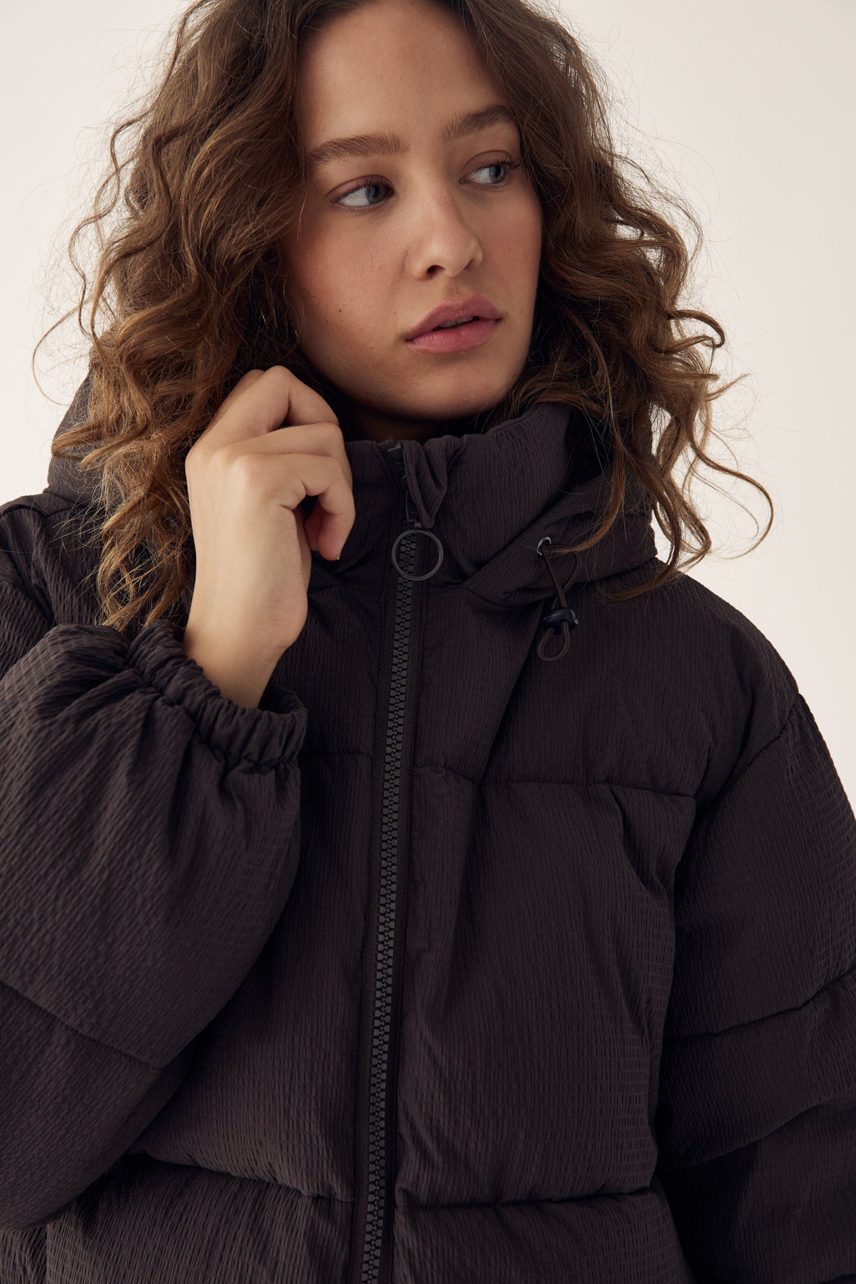Leister Jacket ist eine mittellange Steppjacke mit verstellbarer Kapuze und Reißverschluss. Leister Jacket hat eine lockere und bequeme Passform.