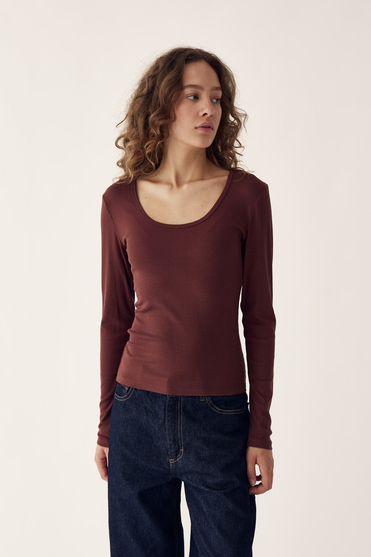 Leyton Top ist ein langärmeliges T-Shirt aus weicher Viskose mit rundem Ausschnitt. Klassische Passform macht dieses T-Shirt zu einem unverzichtbaren Teil der Grundgarderobe. Stylen Sie es im Lagenlook oder tragen Sie es unter einem Blazer für einen eleganteren Look.