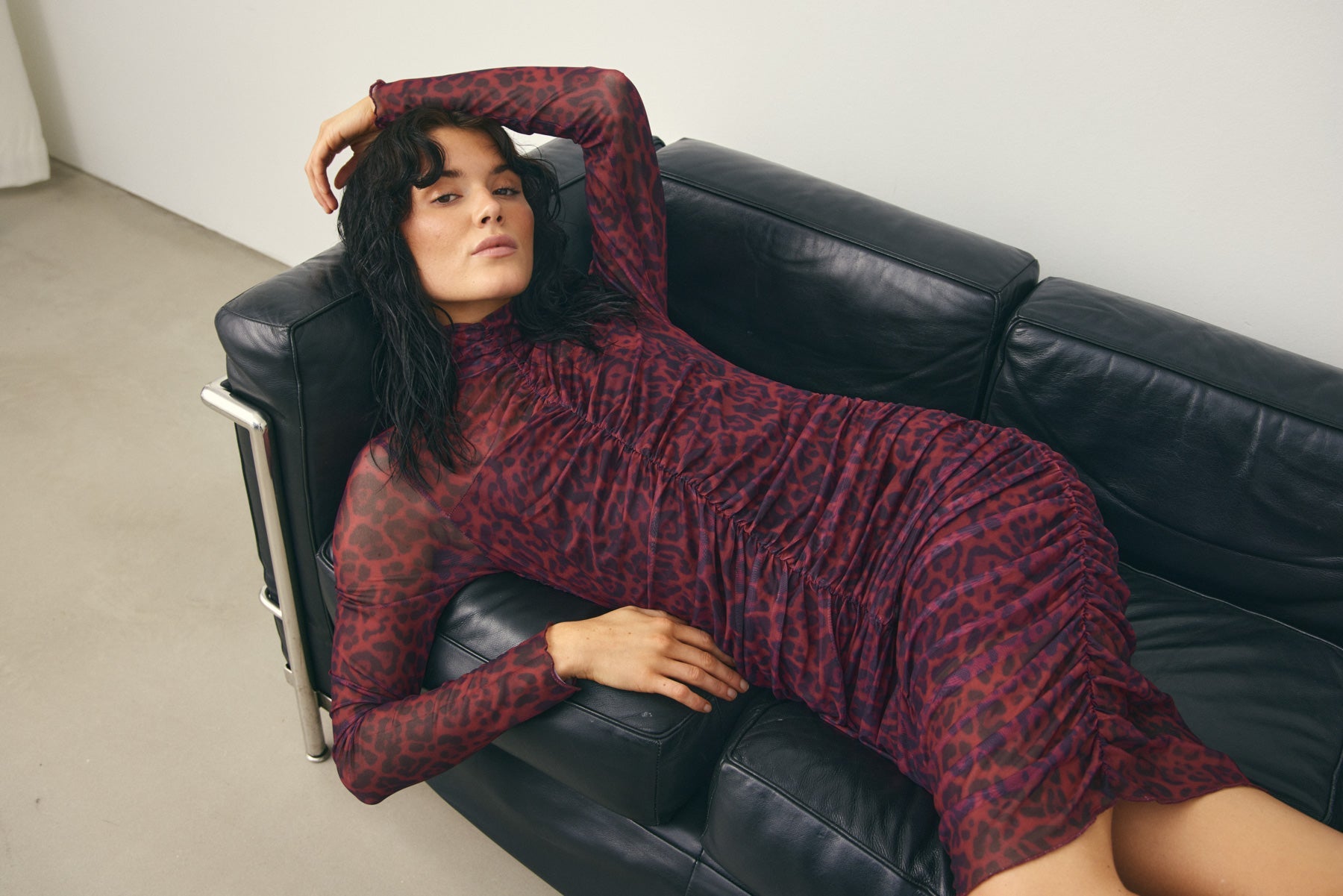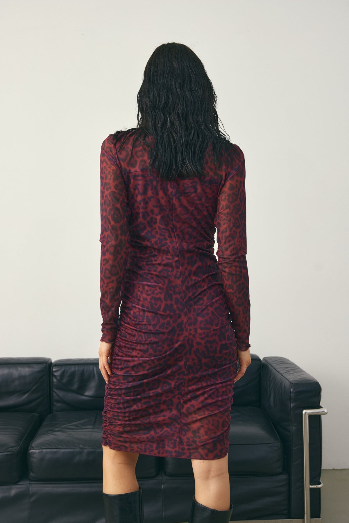 Lilou Dress ist ein Mesh-Kleid mit Cutline auf Brusthöhe und Raffungen entlang der Silhouette. Kombiniere es mit High Heels für einen eleganten Partylook oder mit Stiefeln und Blazer für einen coolen Alltagsstil.
