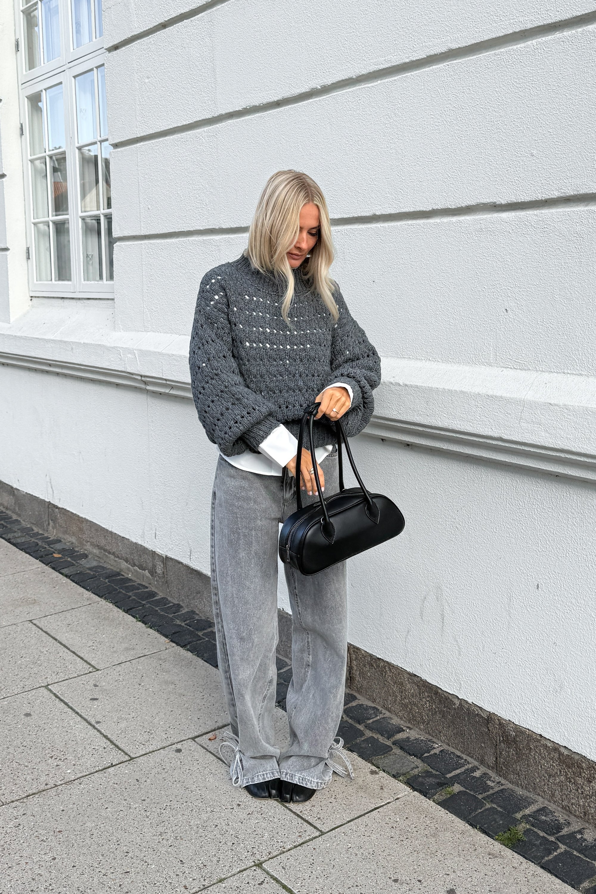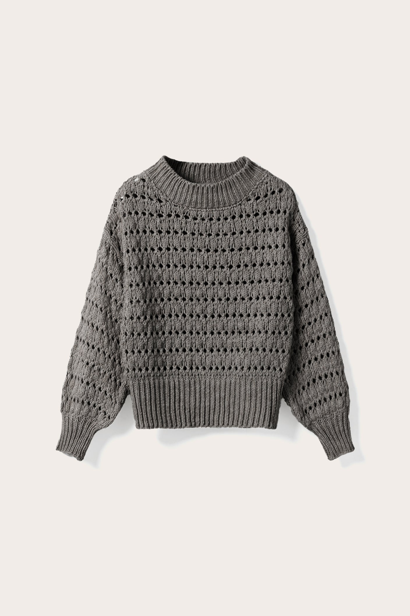Loranne Knit ist ein Strickpullover mit Lochmuster und Rippkanten. Er hat eine lockere Passform und lässt sich leicht für den Alltag stylen.