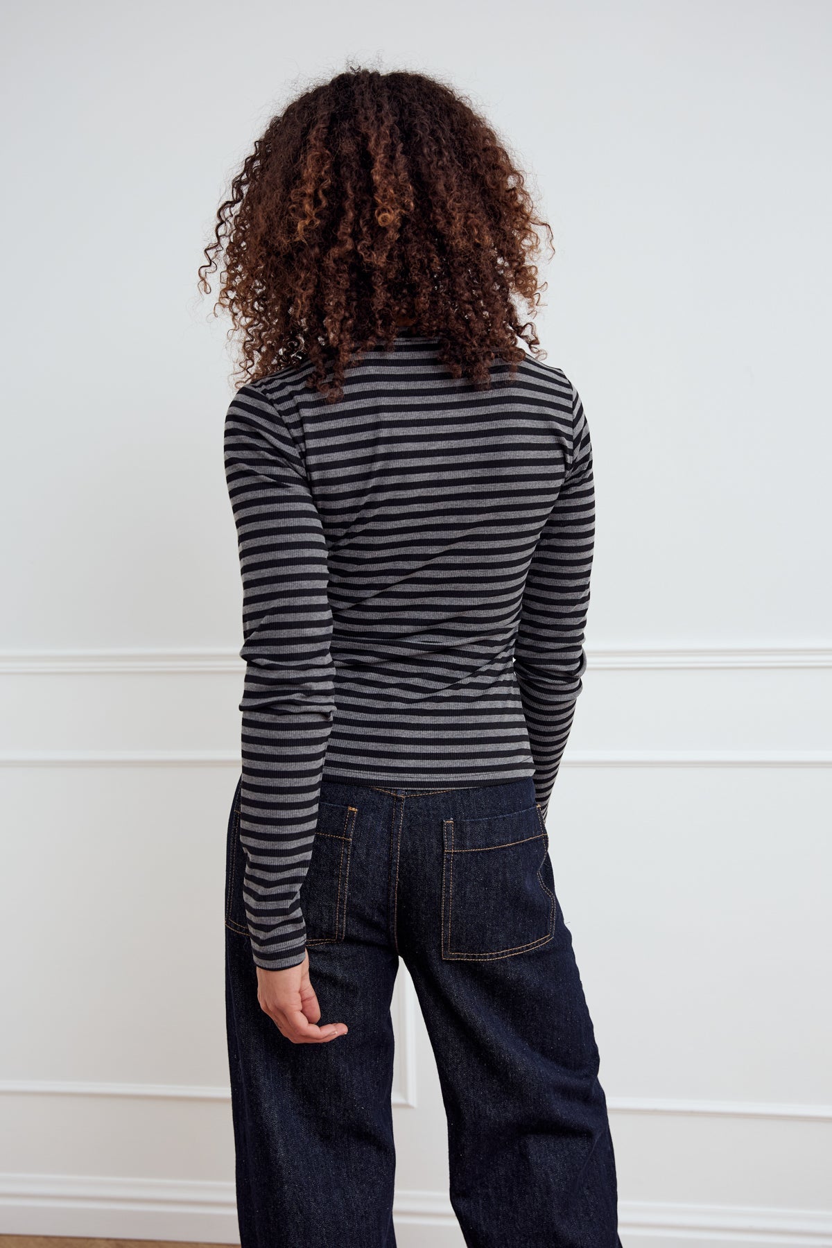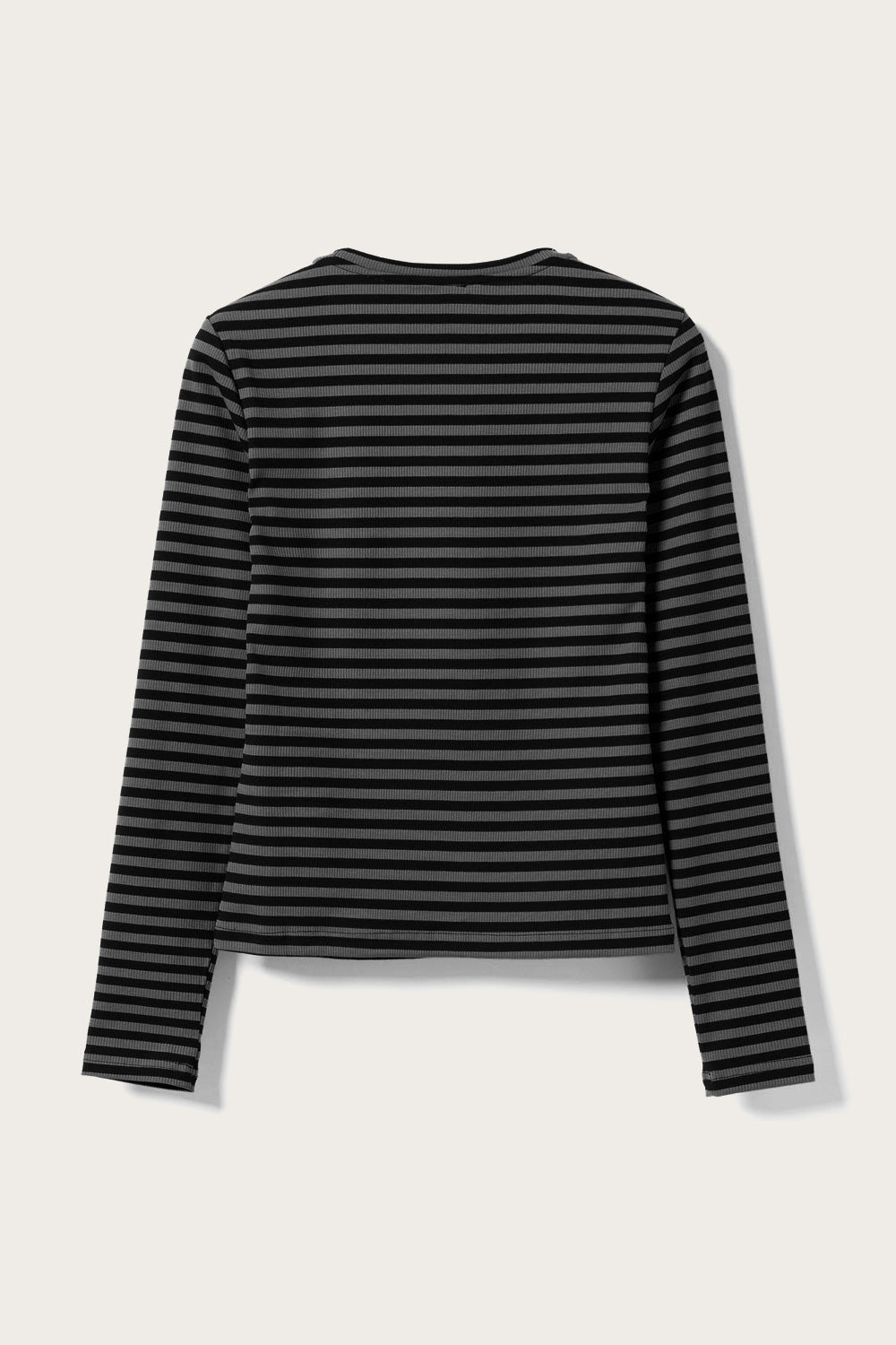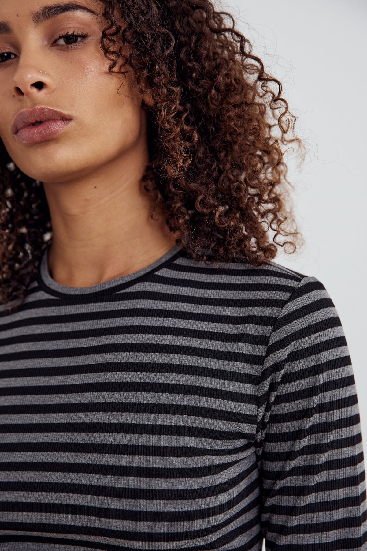 Luana Top ist ein langärmeliges T-Shirt mit Streifenmuster und Rundhalsausschnitt. Das Top hat eine reguläre Passform, die einen entspannten und schlichten Look schafft. Verwenden Sie es als Teil Ihrer Basisgarderobe.