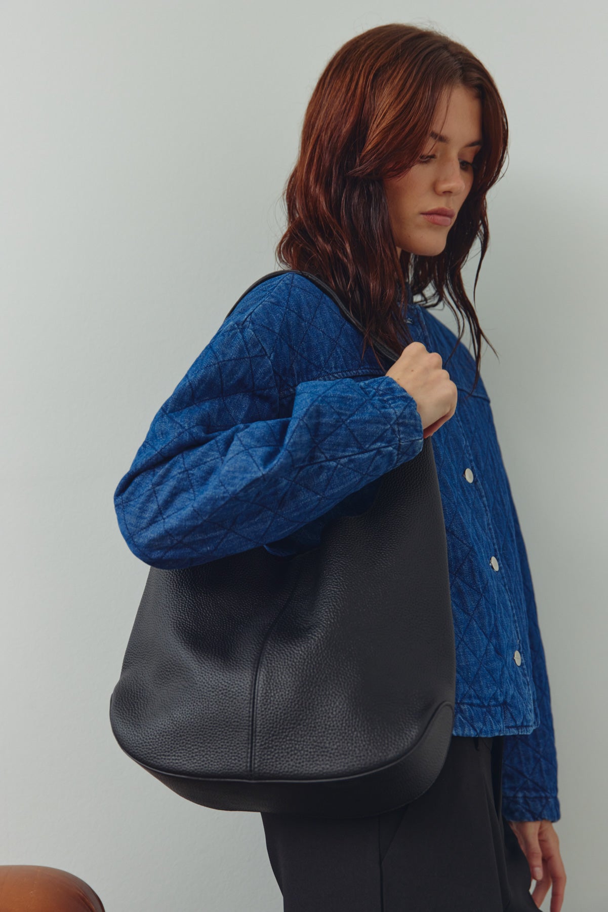 A soft and spacious hobo bag with a minimalist, modern silhouette. Crafted in a pebbled leather-look finish, it features a wide shoulder strap that ensures comfortable wear all day long. The slouchy yet structured design makes it versatile enough for both casual and polished outfits, while the roomy interior easily fits your everyday essentials.
