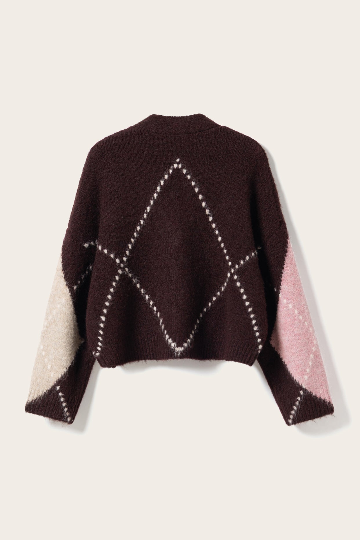 N-Laiana Knit Cardigan ist eine oversized Strickjacke mit klassischem Argyle-Muster. Mit lockerer Passform, langen voluminösen Ärmeln und etwas kürzerer Länge. Das Argyle-Design verleiht einen zeitlosen und edlen Look – perfekt für die Trends des Herbstes. Ein Must-have für die Garderobe.