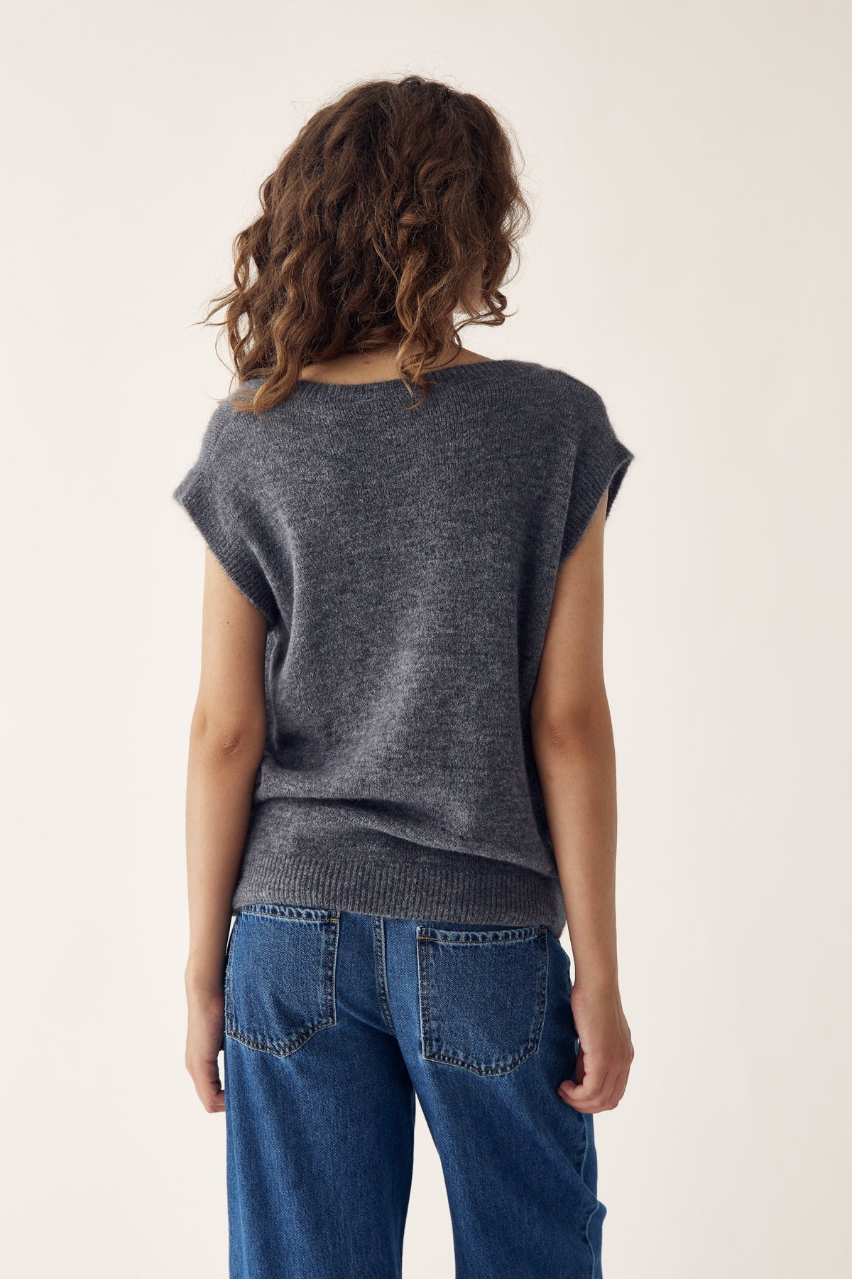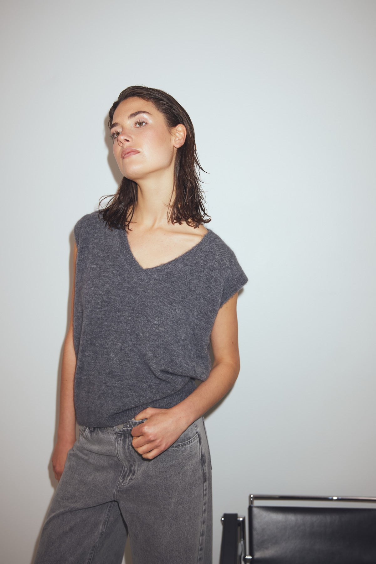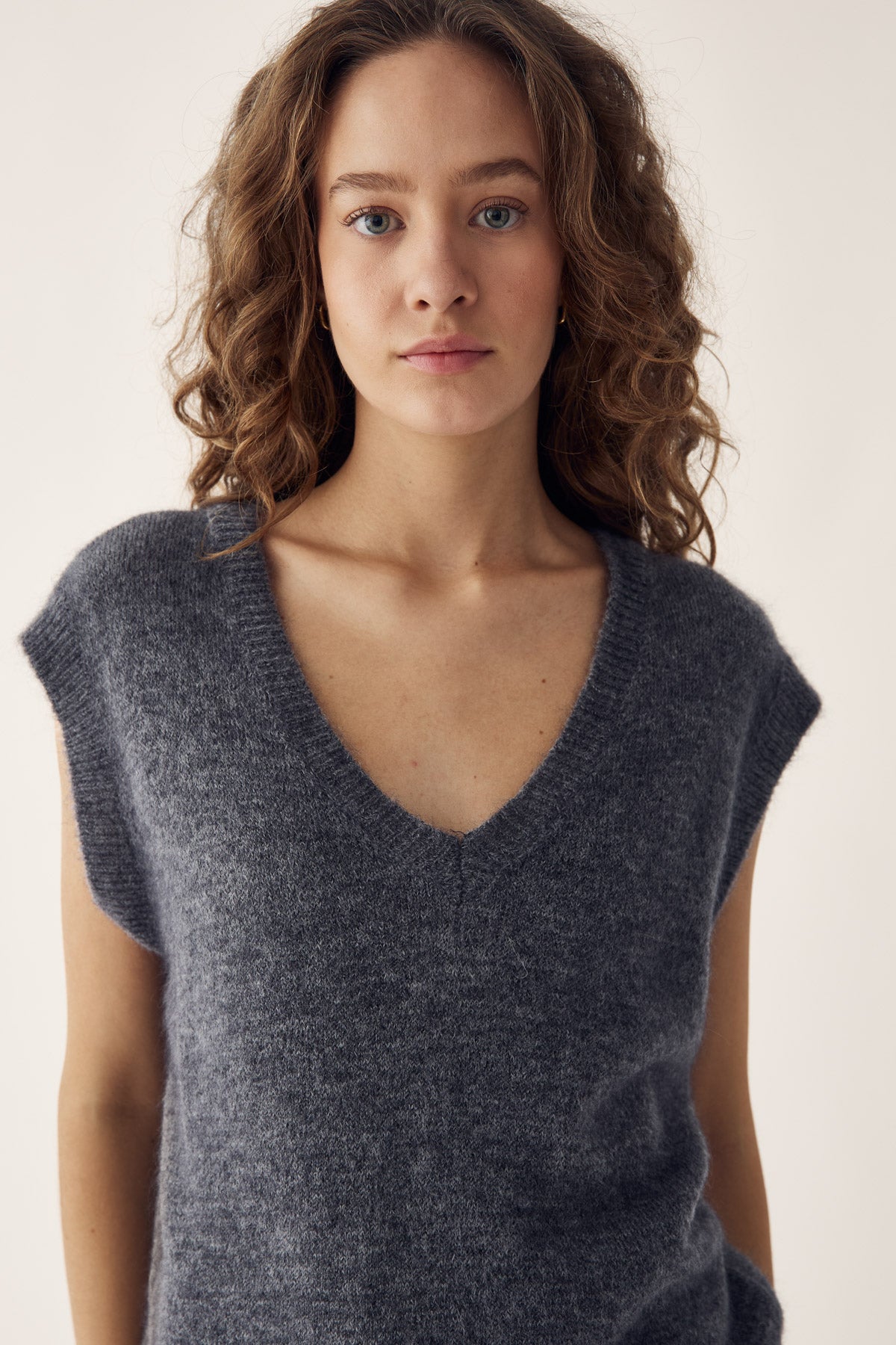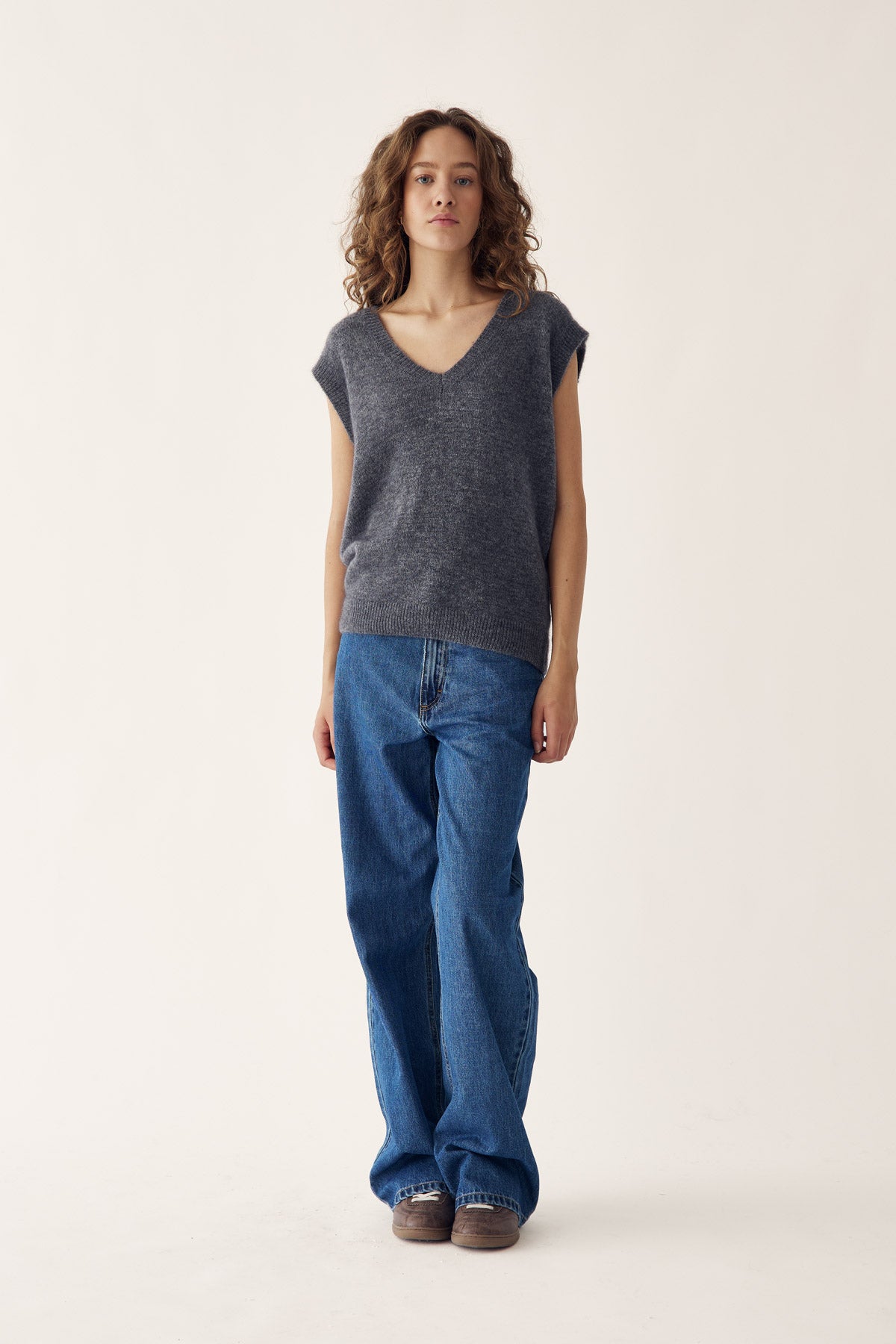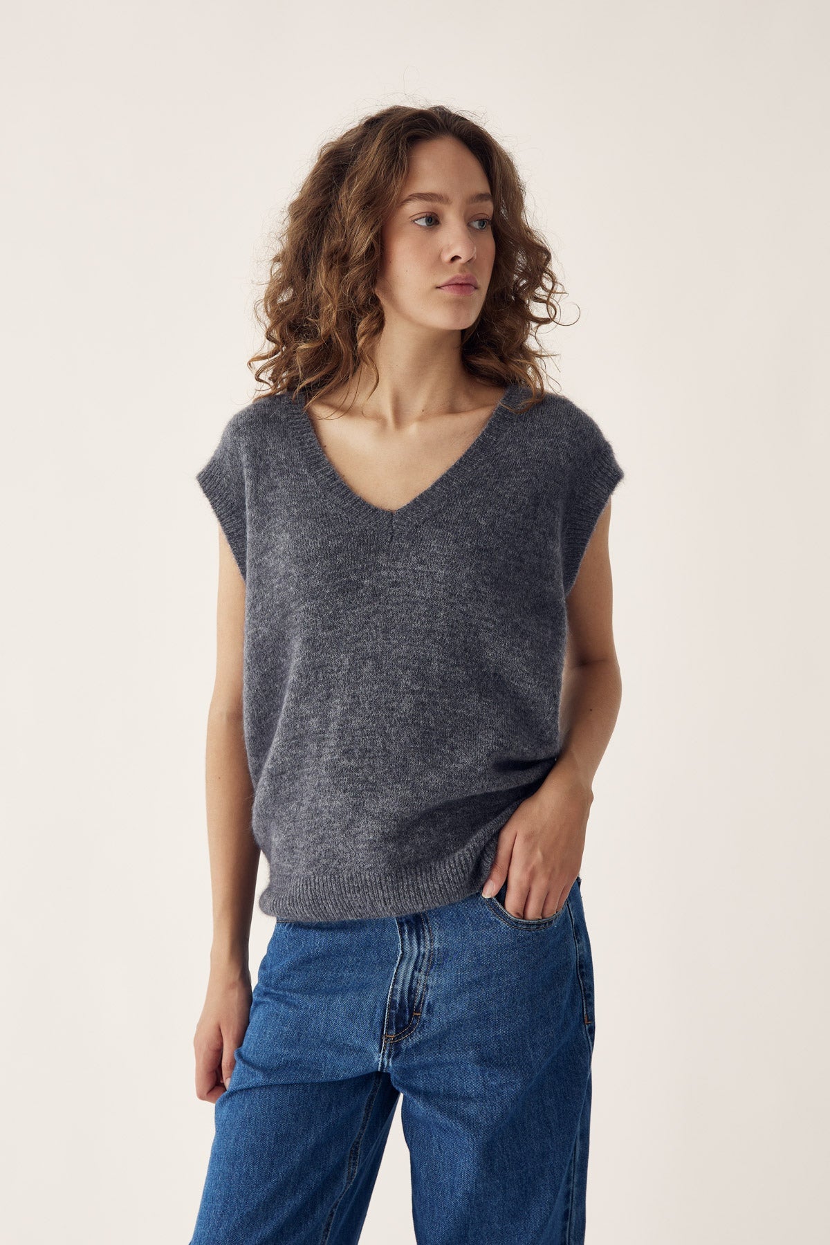 N-Leatrice Knit Vest ist eine Strickweste mit V-Ausschnitt, weicher Textur und lockerer Passform. Sie sorgt für einen entspannten, komfortablen Look und kann über einem Blazer oder unter einem Hemd getragen werden.