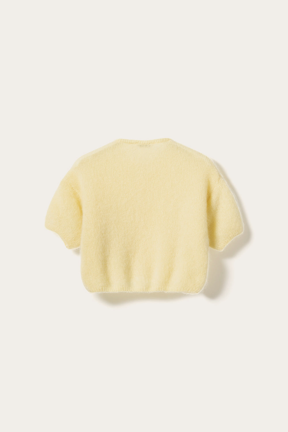 Die N-Lorell Knit Cardigan ist aus einer weichen, flauschigen Mohairmischung gefertigt. Die Strickjacke hat kurze Ärmel und eine Knopfleiste vorne.