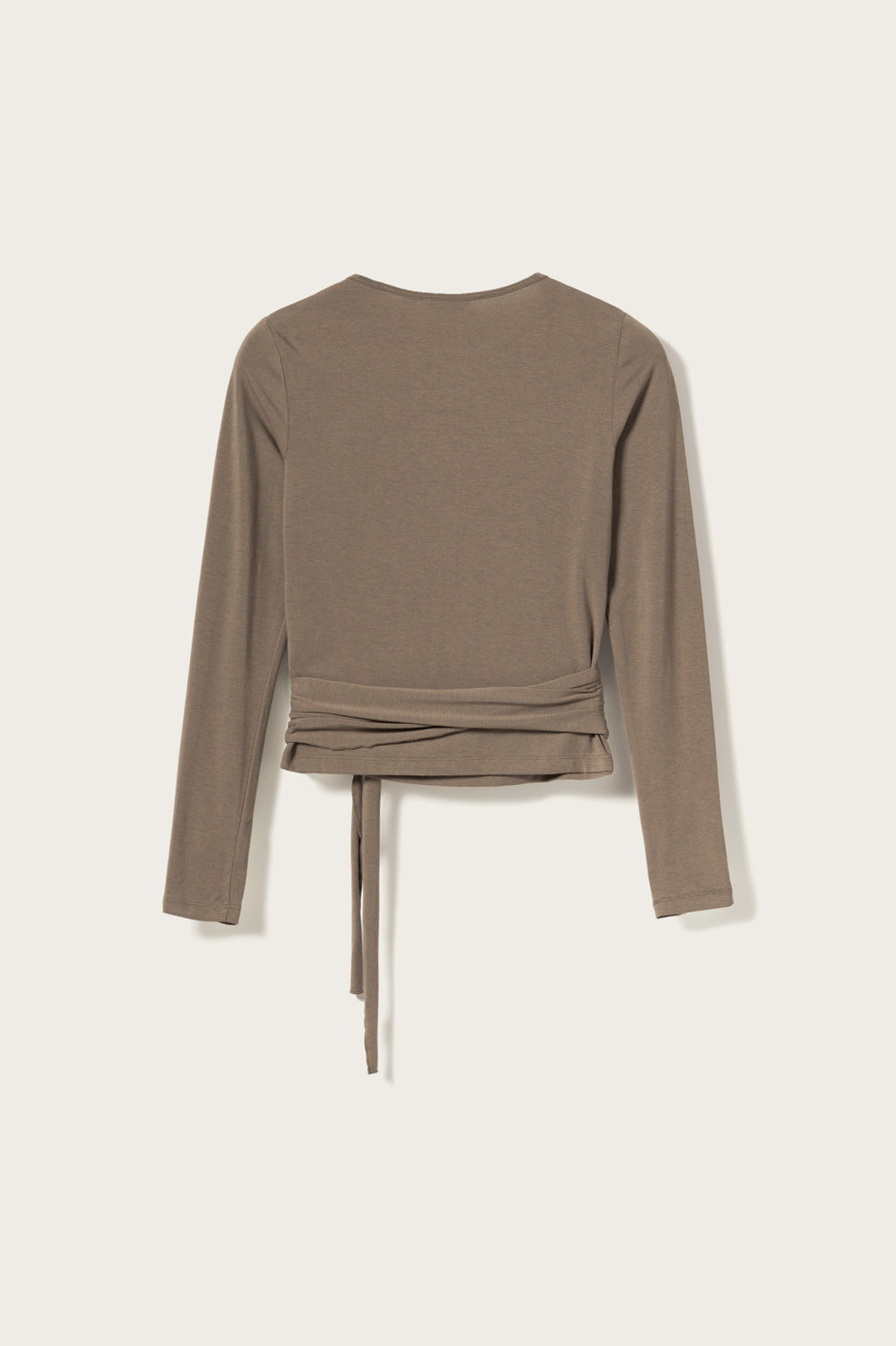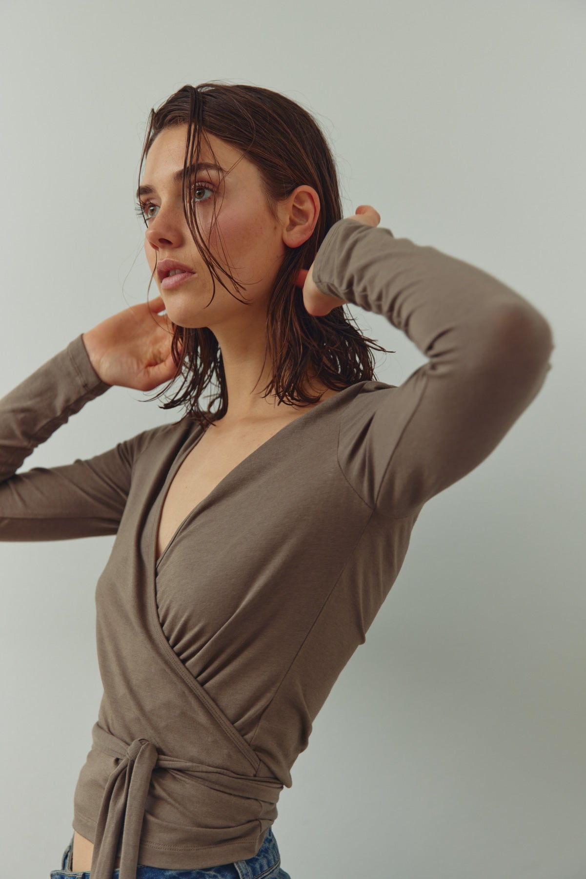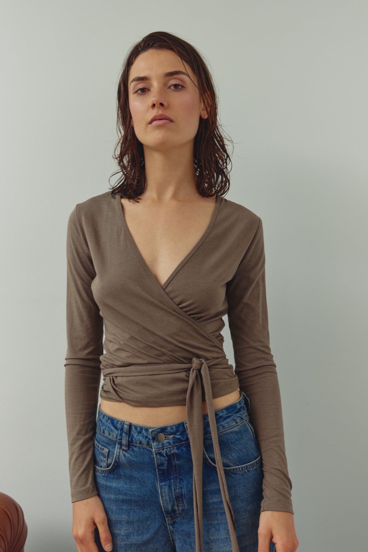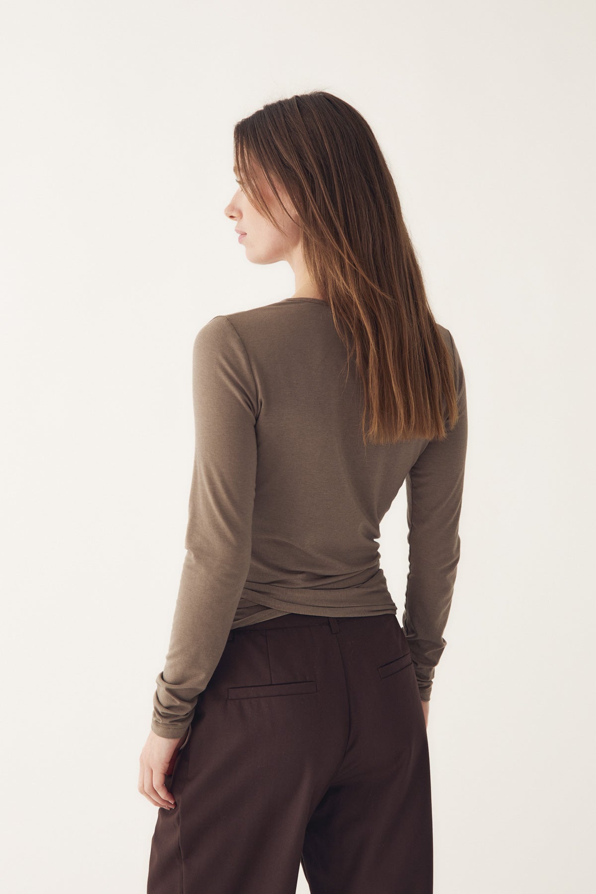 Das N-Maddie Top ist aus einer Viskosemischung gefertigt und verfügt über lange Ärmel sowie eine schmeichelhafte Wickeloptik vorne, die die Taille betont und eine elegante Silhouette formt.