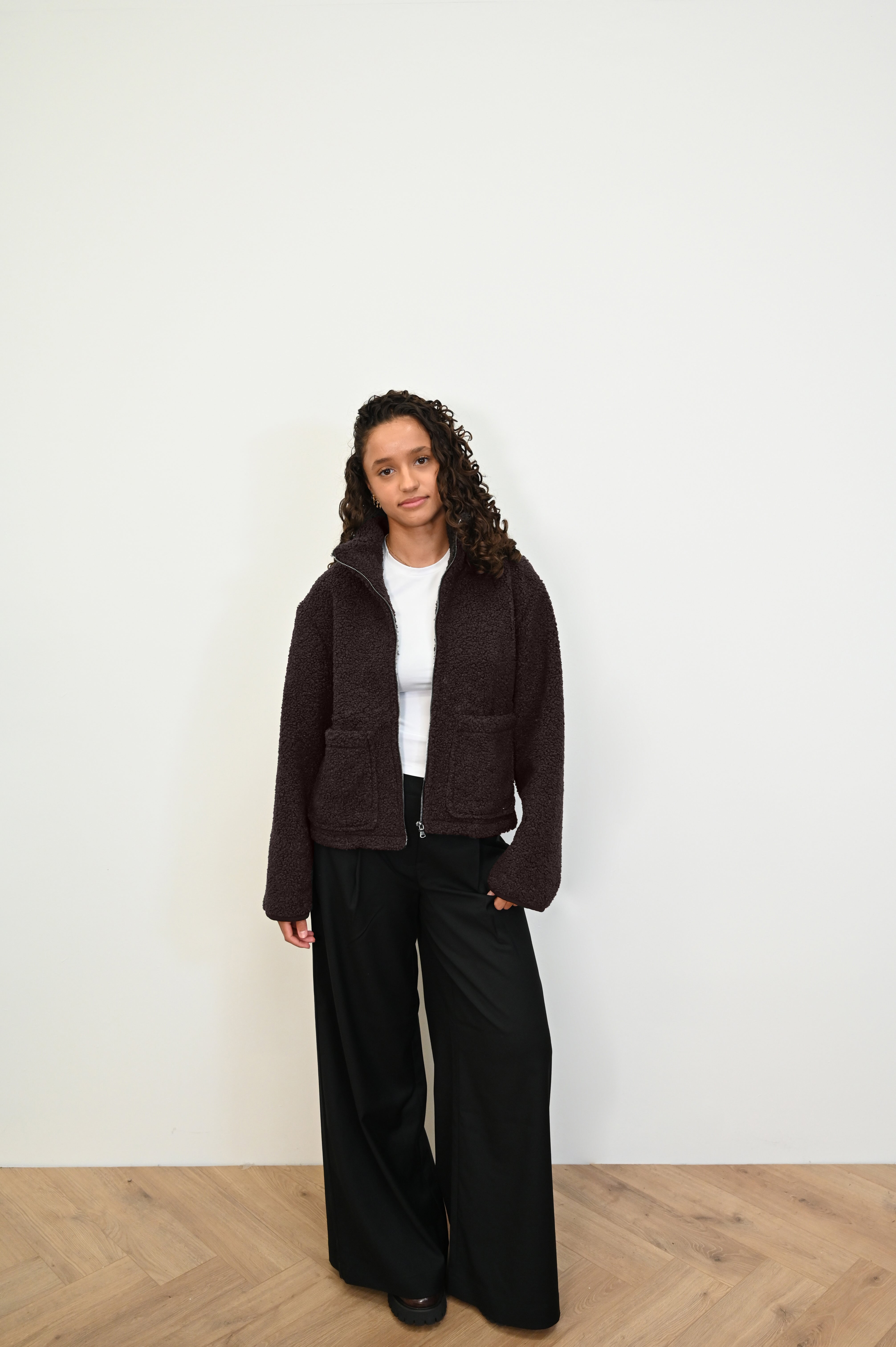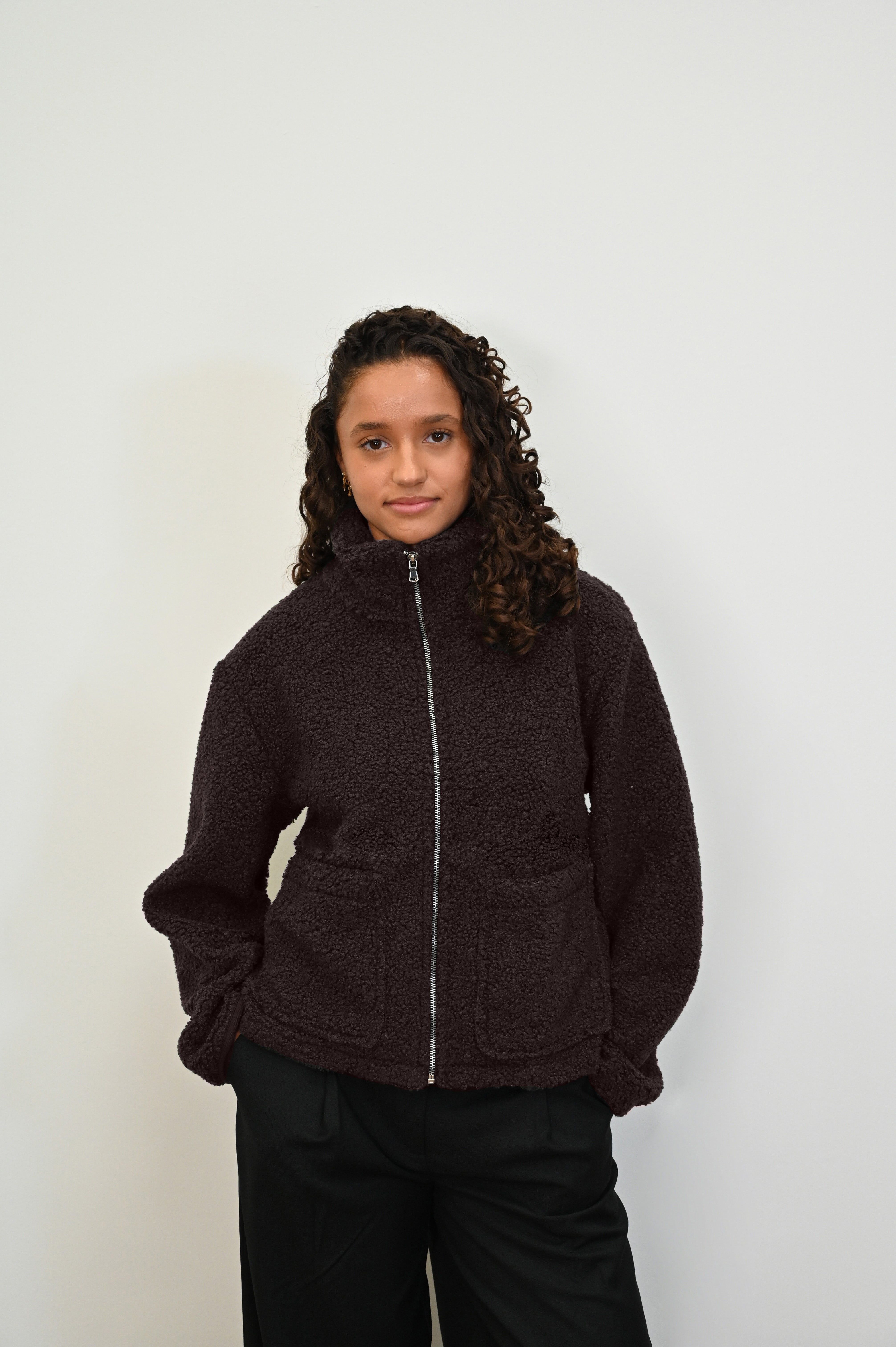 N-Madi Jacket is a short style made from soft teddy fabric. Designed with a high neck, big front pockets and a zipper, it offers both warmth and versatility.